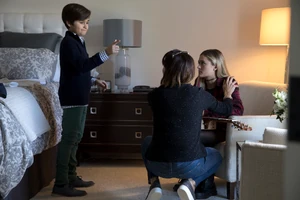 After school Sophie walks into her bathroom to find Eddie and Rome with her little sister Charlotte in the steam shower. She laughs and takes a photo of them before leaving. ("The Perfect Storm")